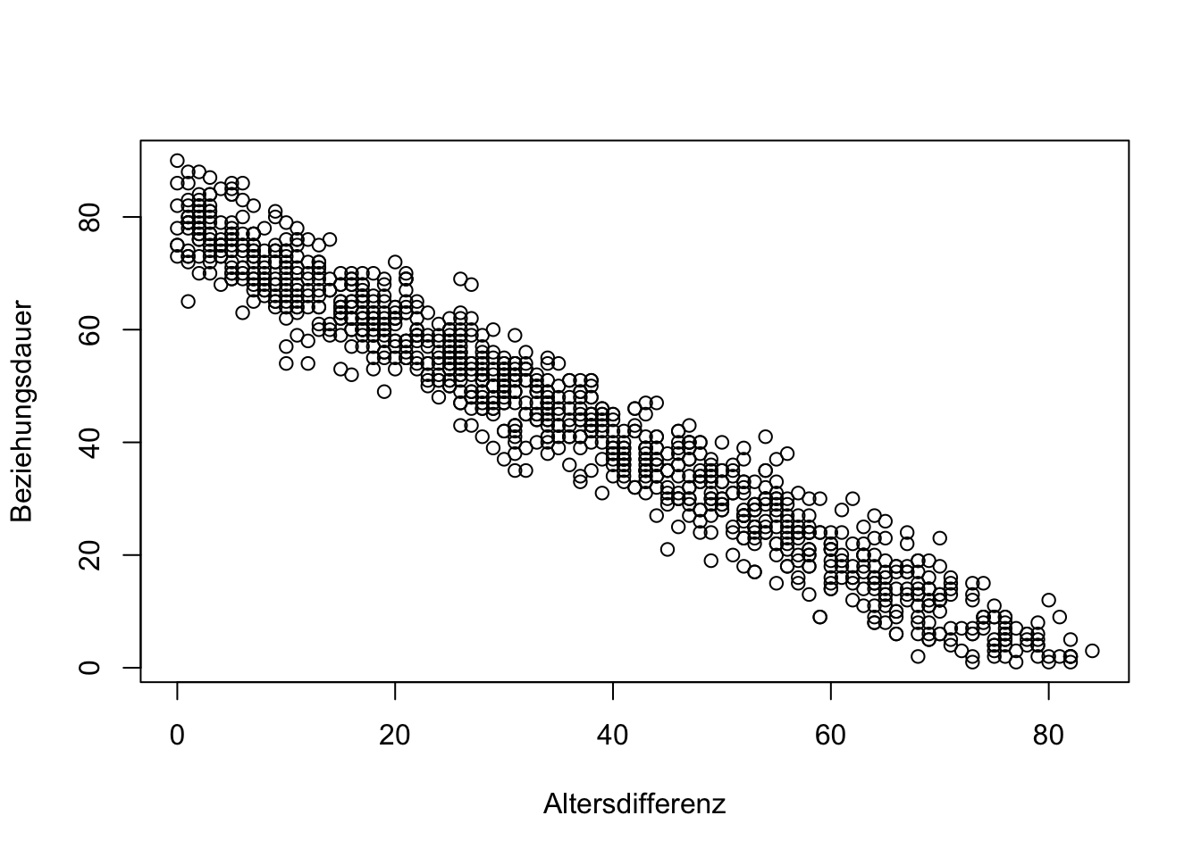 plot(Beziehungsdauer~Altersdifferenz,data=Daten)